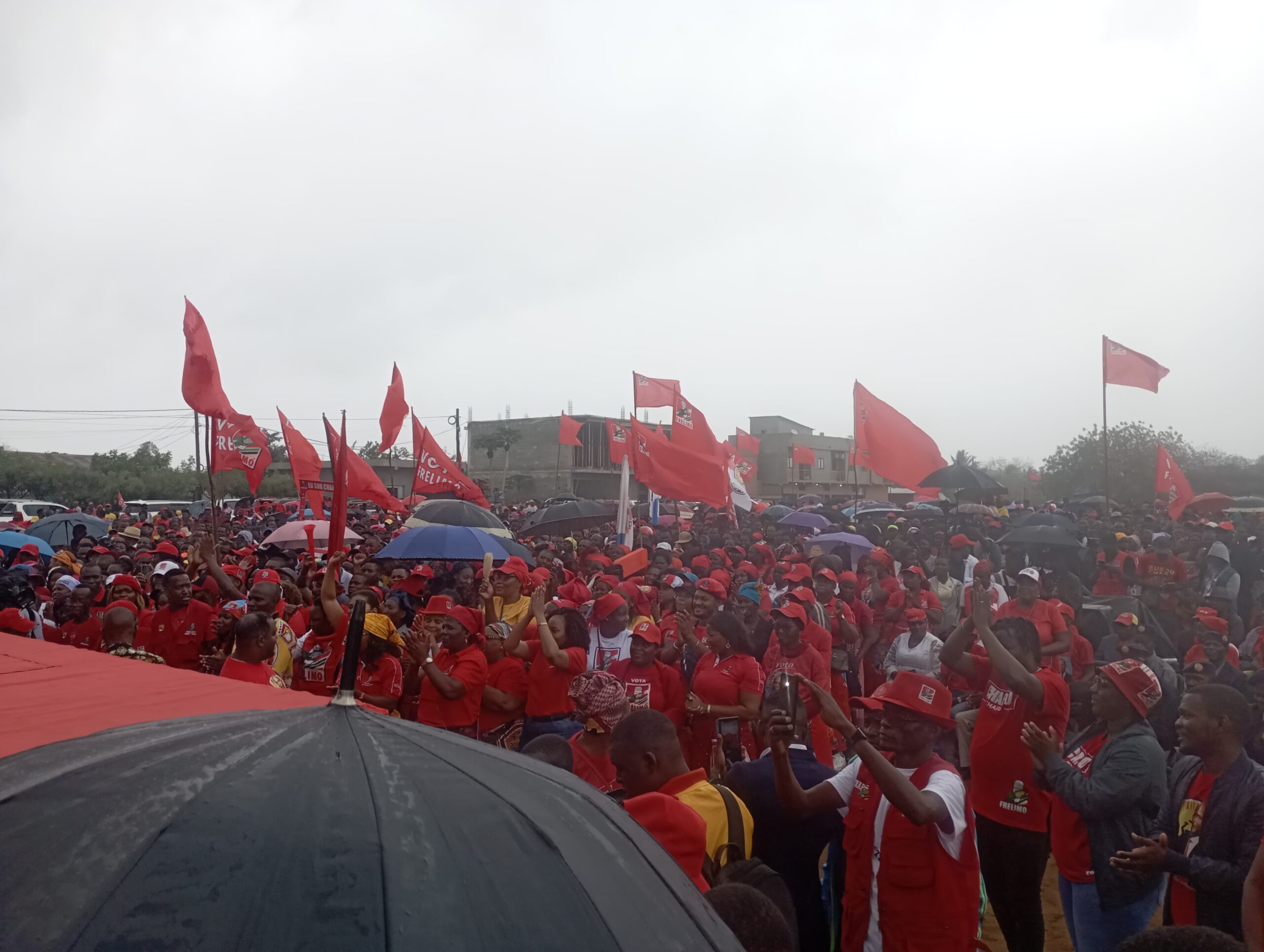A Chuva não está a dar tréguas na Cidade de Tete, mas a multidão não arreda o pé do campo 3 de Janeiro, local de showmicio de Daniel Chapo, candidato da Frelimo à Presidência da República.