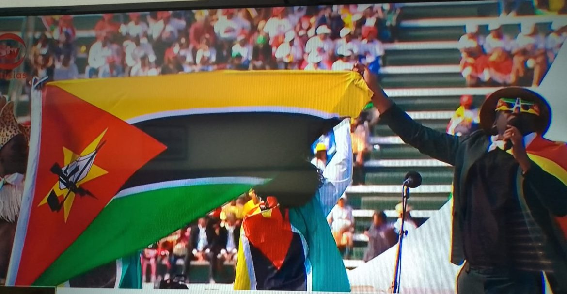 O músico moçambicano, DJ Ardiles, abrilhenta os participantes no Estádio da Machava, província de Maputo, com a sua música intitulada “Chama”. Uma música que representa a união da nação Moçambicana.