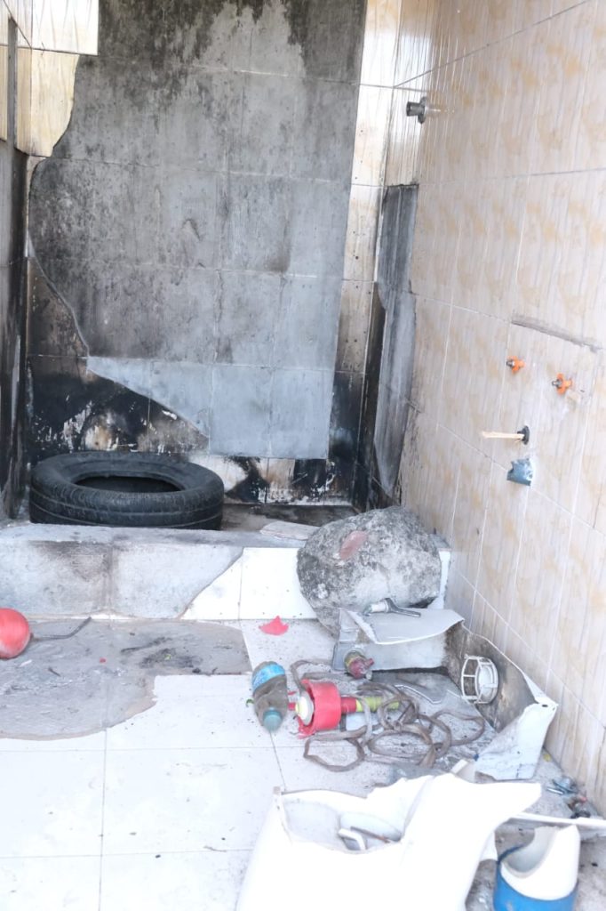 Os desconhecidos atearam fogo num dos compartimentos das instalações, destruíram o mobiliário, as portas e janelas, além do sistema da corrente eléctrica. Danificaram ainda a louça sanitária.