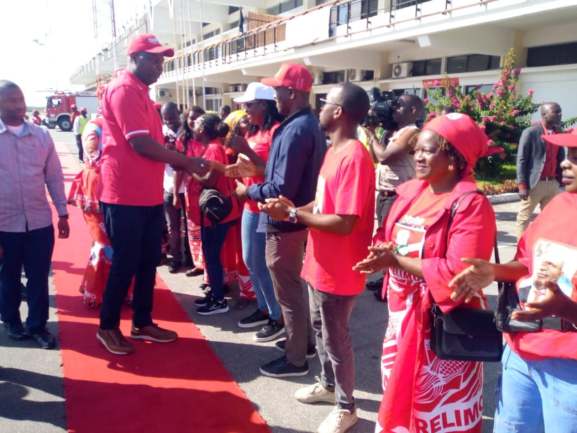 Centenas de membros do partido estão no aeroporto para recebê-lo, destacando-se Lourenço Bulha, cabeça-de-lista da Frelimo para as eleições provinciais e de governador de província.
