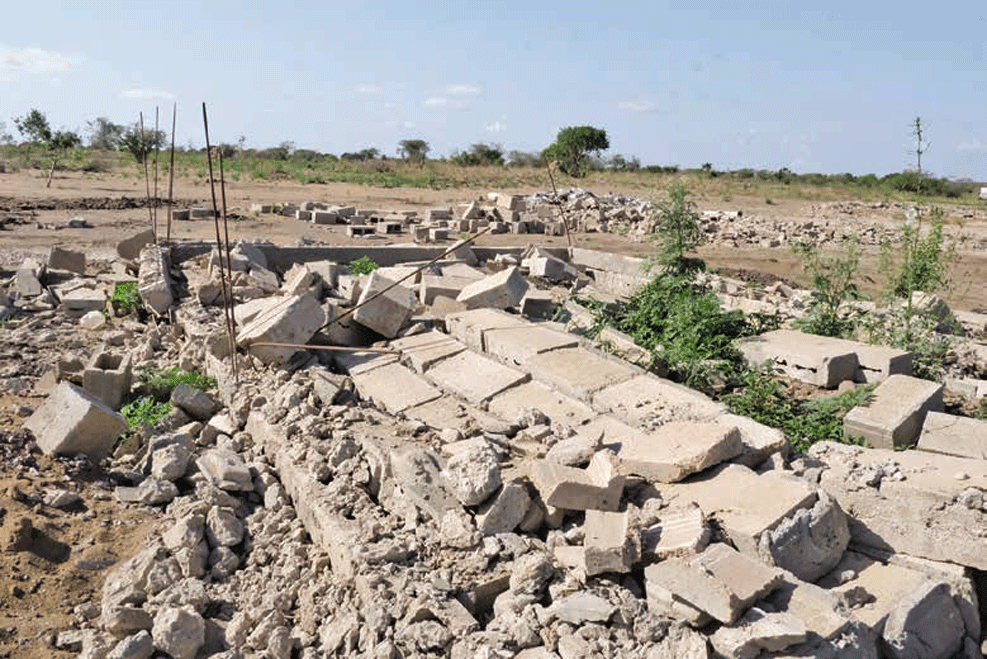 Paredes destruídas por pá-escavadora, blocos de cimento espalhados, linhas de fundação interrompidas a meio e um mercado improvisado entregue ao abandono. É este o retrato actual de uma parte do …
